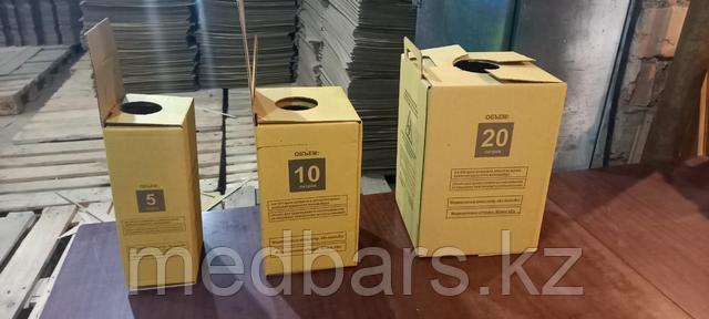 Контейнеры изготовлены из трехслойного гофракартона (100% экологически чистый биоразлагающийся материал), который полностью соотвествуют санитарныем требованиям РК. Маркировка и цветовая характеристика соответствует классу опасности.